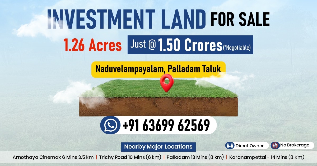 Prime 1.26-acre land in Naduvelampalayam, priced at ₹1.50 crores.